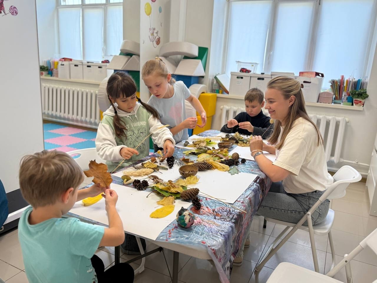 В минувшую субботу прошла творческая встреча в рамках проекта #ИнклюзивныеВыходные2.0 при поддержке Фонд президентских грантов. Ребята под руководством психолога, арт-терапевта Натальи Лемякиной пробовали новое направление — коллажи из листьев и цветов.